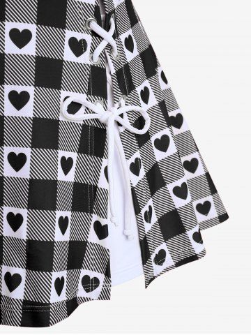 Plus Size Plaid Heart Print Halter Bowknot Lace Up Skirted Tankini Swimsuit - Black - L | Us 12