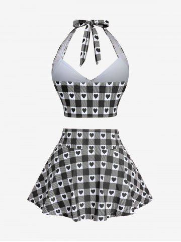 Plus Size Plaid Heart Print Halter Bowknot Lace Up Skirted Tankini Swimsuit - Black - 2x | Us 18-20
