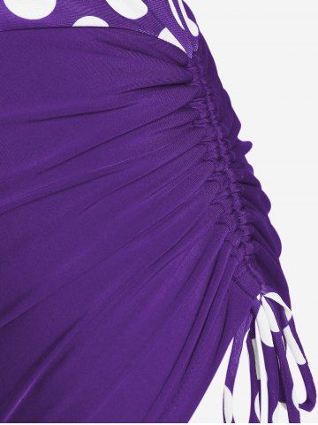 Plus Size Tankinis > Plus Size Polka Dot Halter Twist Cinched Ruched Boyshorts Tankini Swimsuit