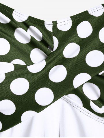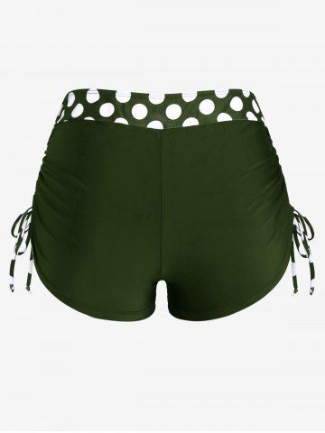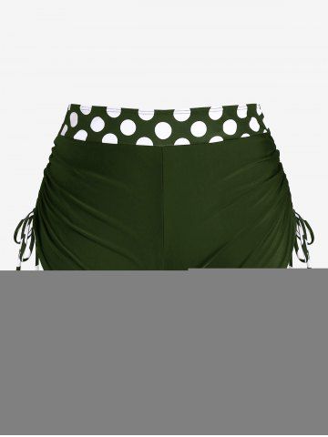 Plus Size Polka Dot Halter Twist Cinched Ruched Boyshorts Tankini Swimsuit - Deep Green - L | Us 12