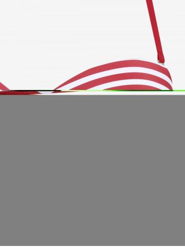 Plus Size Polka Dot Striped Print Ruched Button Tankini Swimsuit (Adjustable Shoulder Strap) - Red - L | Us 12