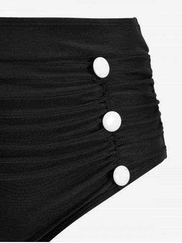 Plus Size Tankinis > Plus Size Polka Dot Striped Print Ruched Button Tankini Swimsuit (Adjustable Shoulder Strap)