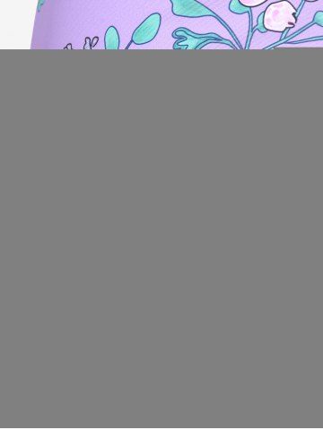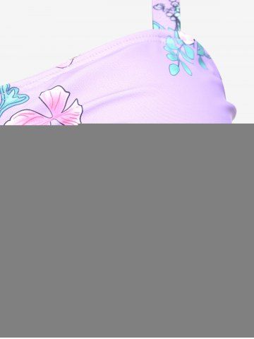 Plus Size Ruched Flower Leaves Print Boyleg Tankini Swimsuit - Light Purple - 2x | Us 18-20