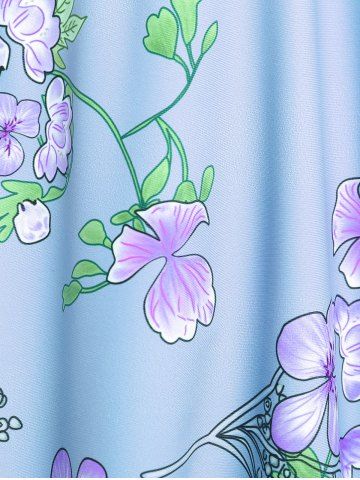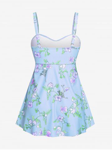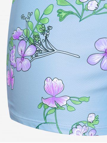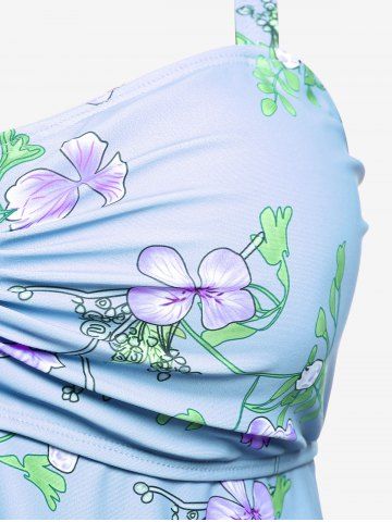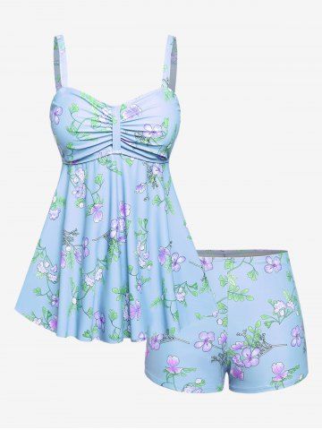 Plus Size Ruched Flower Leaves Print Boyleg Tankini Swimsuit - Light Blue - 1x | Us 14-16