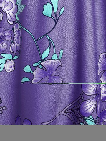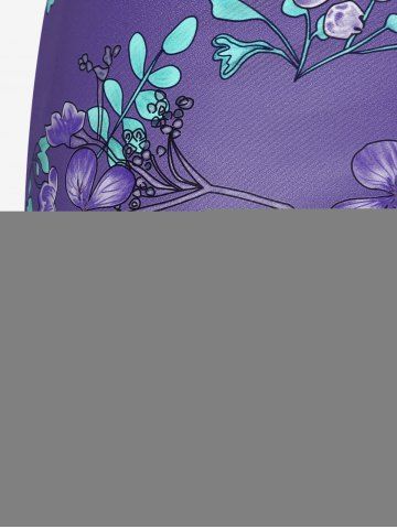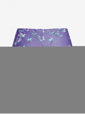 Plus Size Ruched Flower Leaves Print Boyleg Tankini Swimsuit - Concord - 1x | Us 14-16