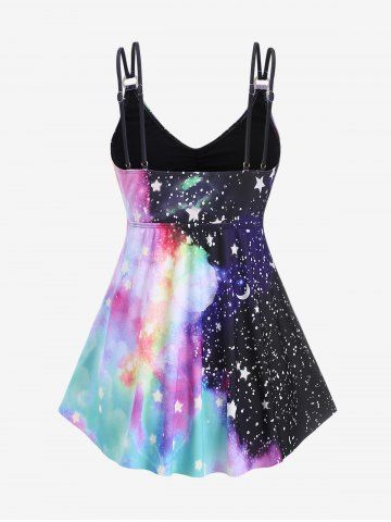 Plus Size Tankinis > Plus Size Ruched Galaxy Moon Stars Print Boyleg Tankini Swimsuit