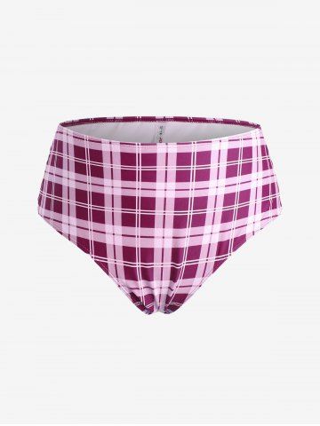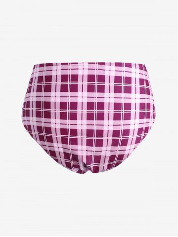 Plus Size Tankinis > Plus Size Ruffles Flounce Padded Plaid Three Piece Skirt Tankini Swimsuit