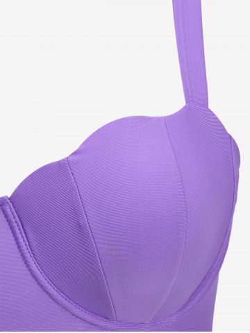 Plus Size Shell Mermaid Scales Colorblock Print Cinched Skirt Tankini Set - Purple - 3x | Us 22-24
