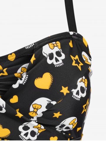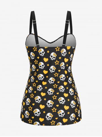 Plus Size Skull Bowknot Heart Stars Print Boyleg Tankini Swimsuit - Yellow - 2x | Us 18-20