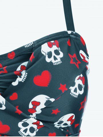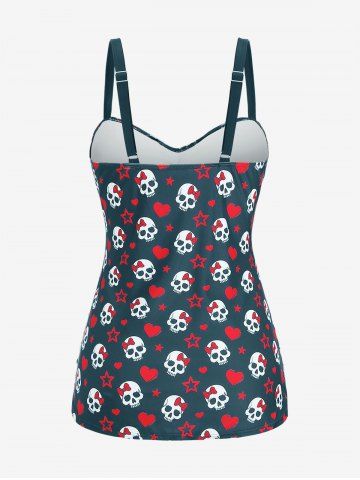 Plus Size Tankinis > Plus Size Skull Bowknot Heart Stars Print Boyleg Tankini Swimsuit