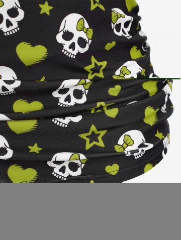 Plus Size Skull Bowknot Heart Stars Print Boyleg Tankini Swimsuit - Green - 2x | Us 18-20