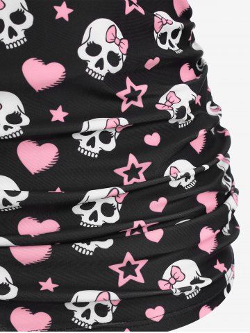 Plus Size Skull Bowknot Heart Stars Print Boyleg Tankini Swimsuit - Multi-c - 1x | Us 14-16
