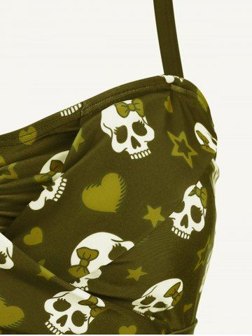 Plus Size Skull Bowknot Heart Stars Print Boyleg Tankini Swimsuit - Sea Turtle Green - 5x | Us 30-32