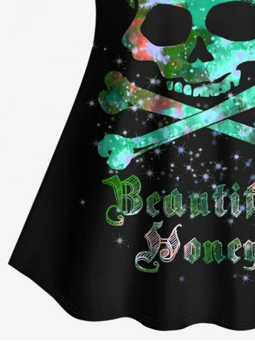 Plus Size Skull Glitter Print Boyshorts Tankini Swimsuit (Adjustable Shoulder Strap) - Green - 5x
