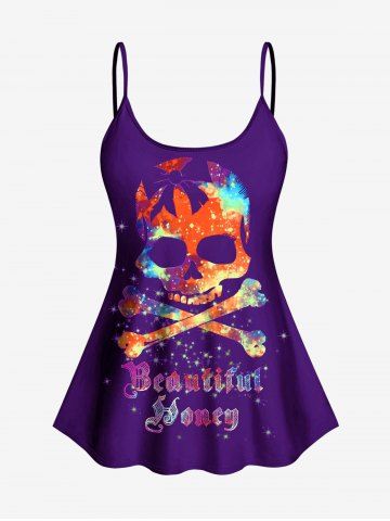 Plus Size Skull Glitter Print Boyshorts Tankini Swimsuit (Adjustable Shoulder Strap) - Concord - 4x