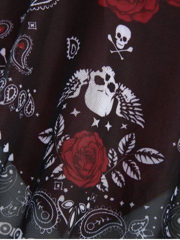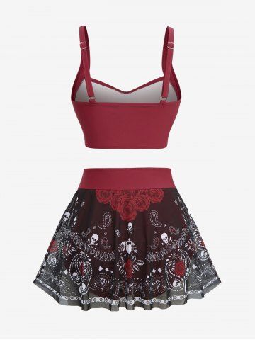 Plus Size Skull Rose Flower Paisley Print Twist Tankini Swimsuit (Adjustable Shoulder Strap) - Red - L | Us 12