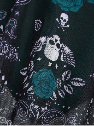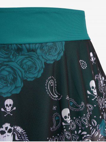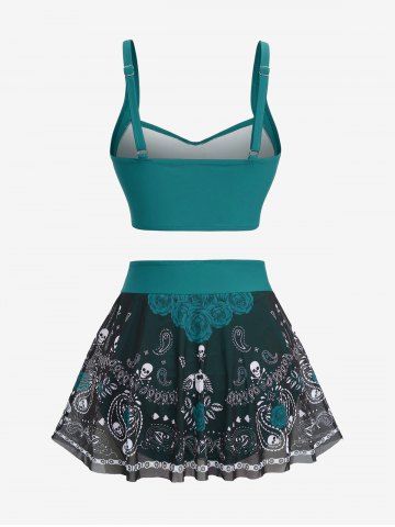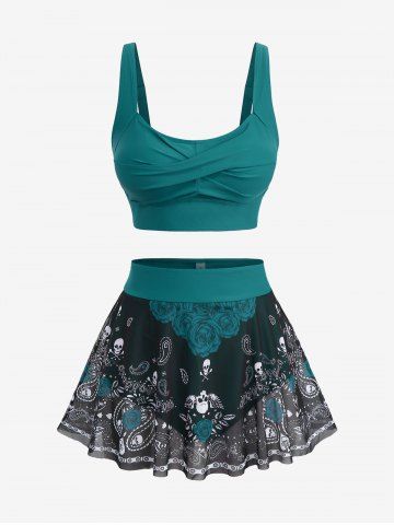 Plus Size Skull Rose Flower Paisley Print Twist Tankini Swimsuit (Adjustable Shoulder Strap) - Mint Green - 2x | Us 18-20