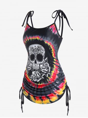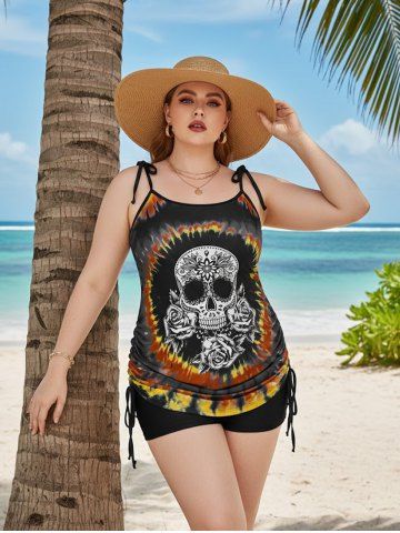 j*****35Plus Size Skull Rose Tie Dye Print Cinched Ruched Tie Boyshorts Tankini SwimsuitColor: BLACK Size: 3X | US 22-24ce maillot est magnifique .la taille parfaite.jai pris la même grandeur de maillot que celui-là que j'ai.binne qualité.