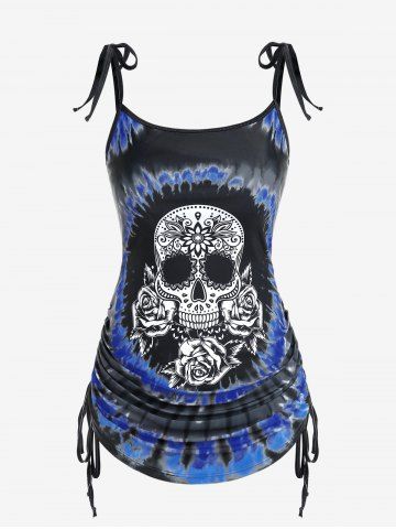 j*****35Plus Size Skull Rose Tie Dye Print Cinched Ruched Tie Boyshorts Tankini SwimsuitColor: BLACK Size: 3X | US 22-24ce maillot est magnifique .la taille parfaite.jai pris la même grandeur de maillot que celui-là que j'ai.binne qualité.