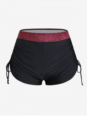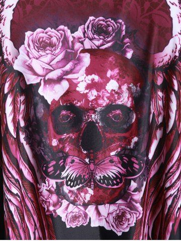 Plus Size Skull Rose Wing Print Cinched Boyshorts Tankini Swimsuit - Deep Red - L | Us 12