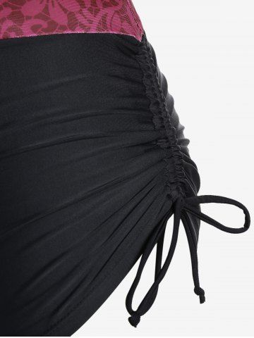 Plus Size Skull Rose Tie Dye Print Cinched Ruched Tie Boyshorts Tankini Swimsuit