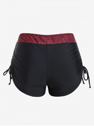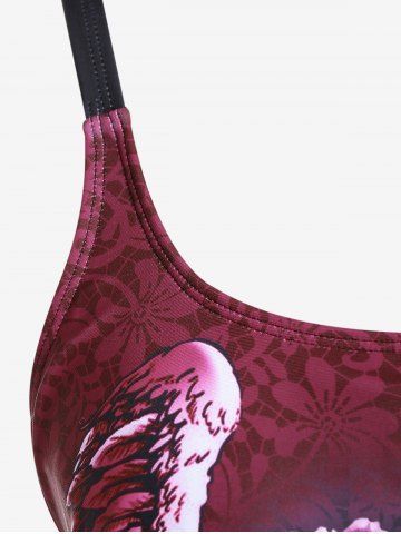 Plus Size Skull Rose Wing Print Cinched Boyshorts Tankini Swimsuit - Deep Red - 2x | Us 18-20