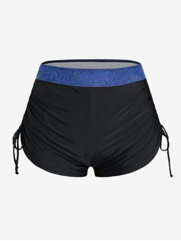Plus Size Skull Rose Tie Dye Print Cinched Ruched Tie Boyshorts Tankini Swimsuit