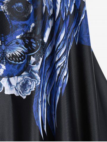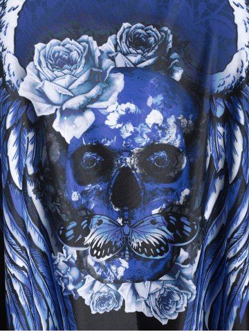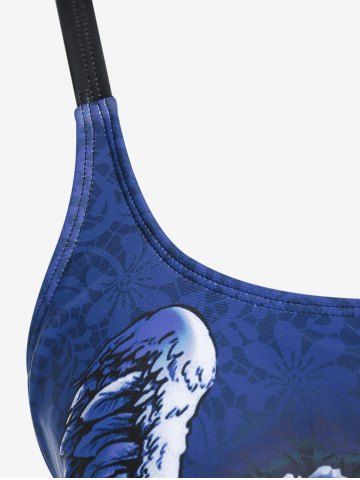 Plus Size Skull Rose Wing Print Cinched Boyshorts Tankini Swimsuit - Deep Blue - 2x | Us 18-20