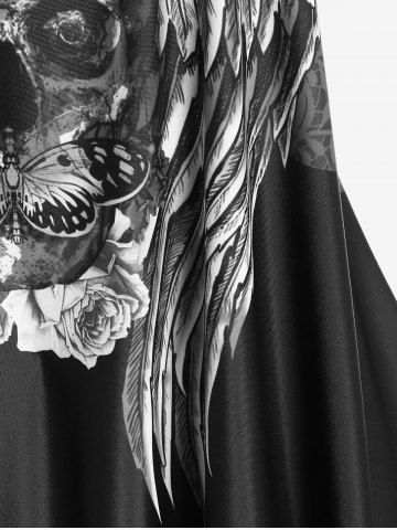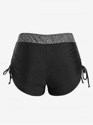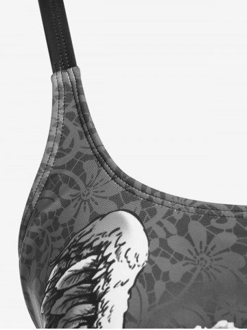 Plus Size Skull Rose Wing Print Cinched Boyshorts Tankini Swimsuit - Gray - 4x | Us 26-28