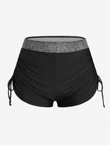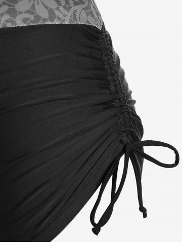 Plus Size Skull Rose Tie Dye Print Cinched Ruched Tie Boyshorts Tankini Swimsuit