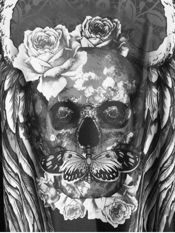 Plus Size Tankinis > Plus Size Skull Rose Wing Print Cinched Boyshorts Tankini Swimsuit