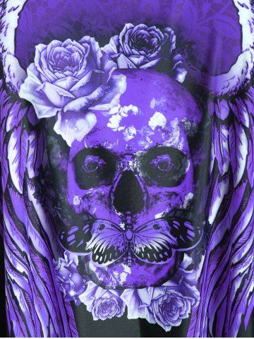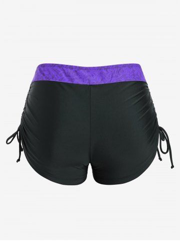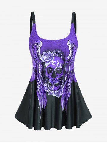 Plus Size Skull Rose Wing Print Cinched Boyshorts Tankini Swimsuit - Purple - 3x | Us 22-24