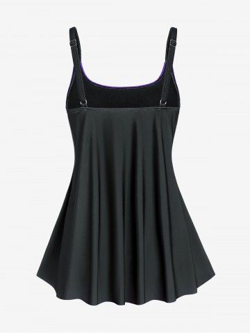 Plus Size & Curve Gothic Skull Print Ruffled Overlay Tankini Swimwear