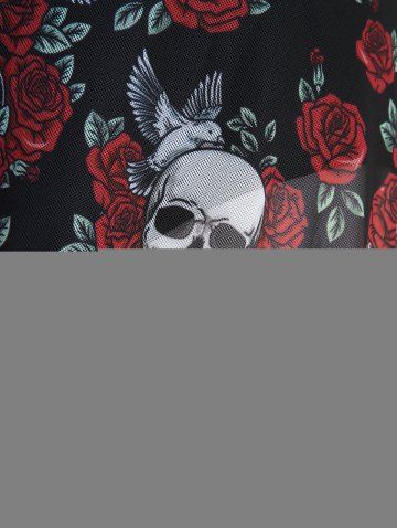 Plus Size Skulls Rose Flowers Print Skirt Bowknot Crisscross Straps Tankini Swimsuit - Red - L | Us 12