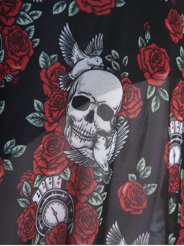 Plus Size Tankinis > Plus Size Skulls Rose Flowers Print Skirt Bowknot Crisscross Straps Tankini Swimsuit