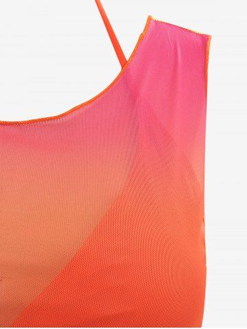 Plus Size Solid Halter Tankini Swimsuit with Ombre Print Cinched Ruched Cover Up Three Piece Set - Red - 2xl