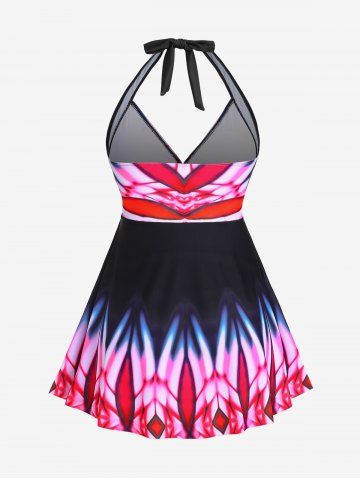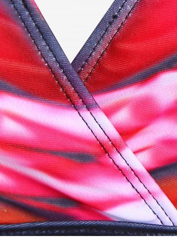 Plus Size Tie Dye Backless Halter Padded Surplice Tankini Swimsuit - Red - 3x | Us 22-24