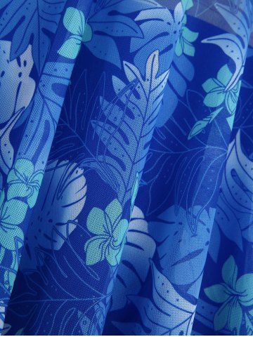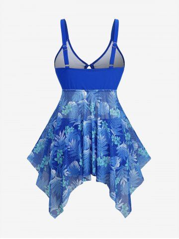 Plus Size Tropical Flowers Leaf Print Cinched Hollow Out Panel Asymmetrical Boyleg Tankini Swimsuit - Deep Blue - 2x | Us 18-20