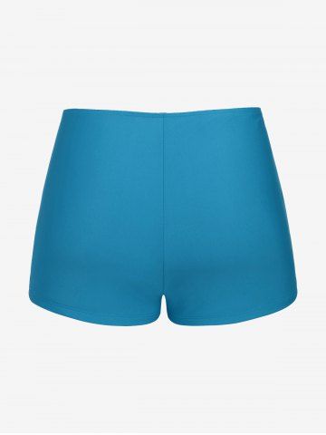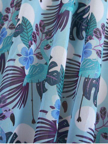 Plus Size Tropical Leaf Hibiscus Flower Print Cinched Boyleg Tankini Swimsuit (Adjustable Shoulder Strap) - Peacock Blue - M | Us 10