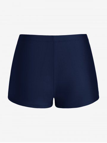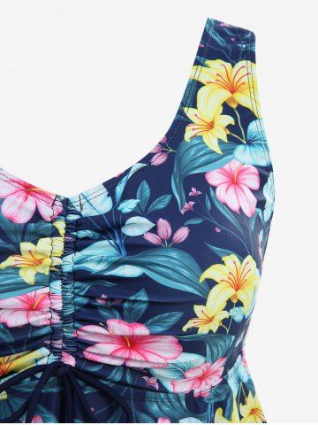 Plus Size Tankinis > Plus Size Tropical Leaf Hibiscus Flower Print Cinched Boyleg Tankini Swimsuit