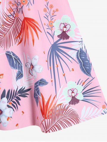 Plus Size Tropical Leaf Hibiscus Flower Print Hawaii Tied Boyleg Tankini Swimsuit (Adjustable Shoulder Strap) - Light Pink - 1x | Us 14-16