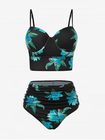 Plus Size Tankinis > Plus Size Underwire Floral Tankini Swimsuit With Cover Up Set