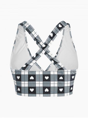 Plus Size Valentines Heart Bowknot Crisscross Padded Three Piece Tankini Swimsuit - Black - L | Us 12