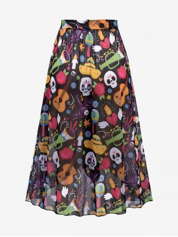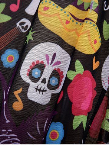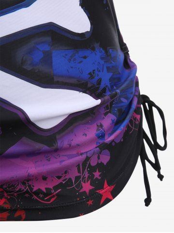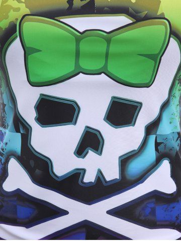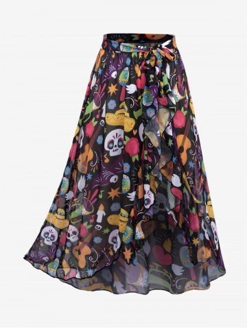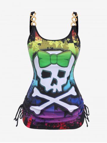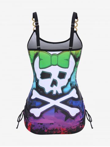 Skull Bowknot Colorblock Painting Splatter Print Cinched Top and Bottom Tankini Set and Floral Mesh Wrap Flounce Asymmetric Sarong Three Piece Swimsuit - Multi-a - 1x | Us 14-16