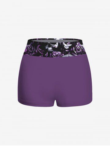 Skull Cross Flower Bird Print Twist Halter Backless Boyleg Tankini Swimsuit - Purple - 3x