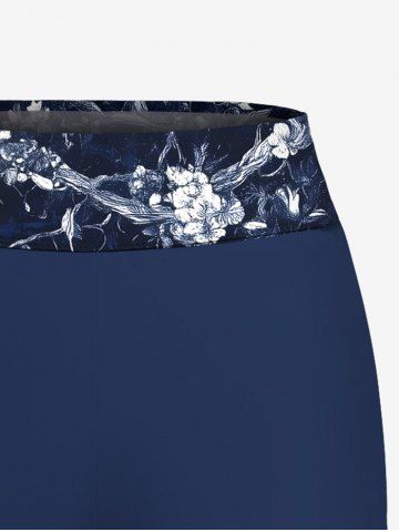 Skull Flower Tree Branch Print Hawaii Twist Halter Backless Boyleg Tankini Swimsuit - Deep Blue - 4x