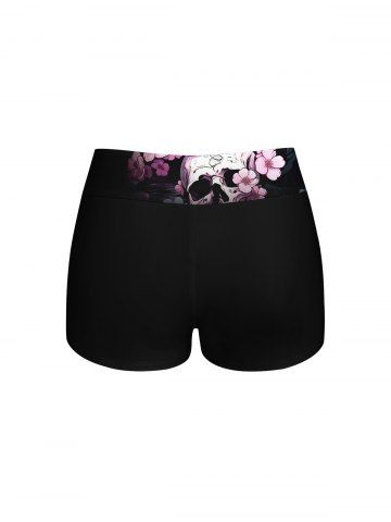 Skulls Flowers Print Boyleg Tankini Swimsuit(Adjustable Shoulder Strap) - Black - 1x