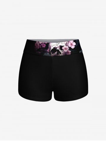 Plus Size Tankinis > Skulls Flowers Print Boyleg Tankini Swimsuit(Adjustable Shoulder Strap)