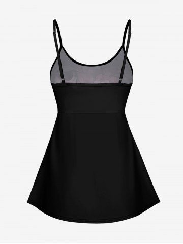 Skulls Flowers Print Boyleg Tankini Swimsuit(Adjustable Shoulder Strap) - Black - 2x