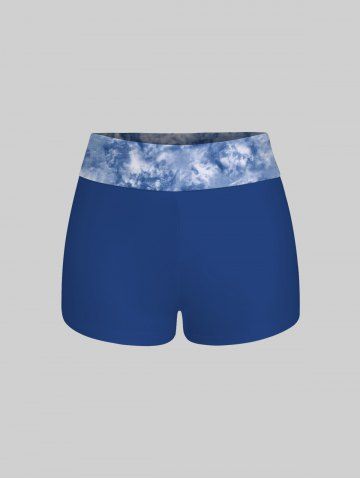 Tie Dye Heart Print Boyshort Tankini Set - Blue - 5x